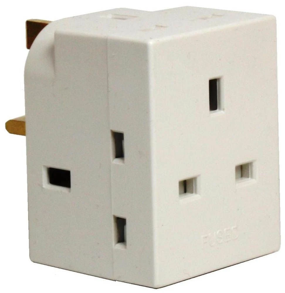 Socket adaptor that provides 3 x additional sockets from a single wall socket.