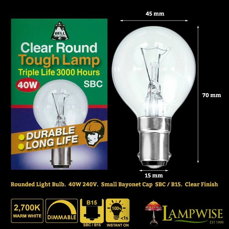 40 Watt Bell Lighting Clear Round Bulb SBC B15