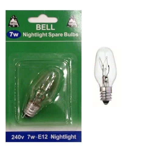Bell 240v 7w E14 Nightlight Bulbs have been specially designed to give a soft glowing light creating a safe and reassuring glow during dark hours. E12 fitting.