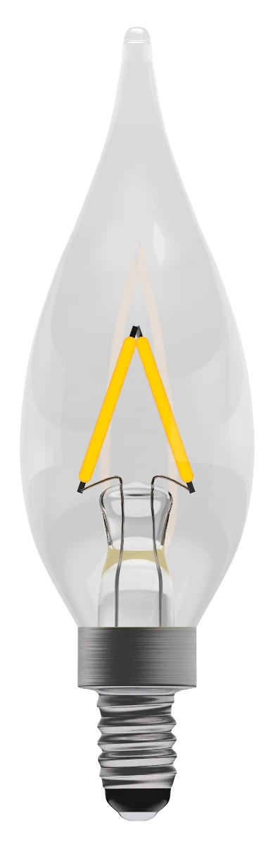 British Electric Pro LED filament clear candle shape bulb for chandeliers with the smaller E10 screw thread with a 10mm diameter. This light bulb features a warm white 2,700k colour temperature and excellent long life of 15,000 hours on average with an energy rating of A++.