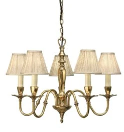 Interiors 1900 CA1SHB-CA1P5B New Classics Stanford Antique Brass 5Lt Pendant & Beige Shades