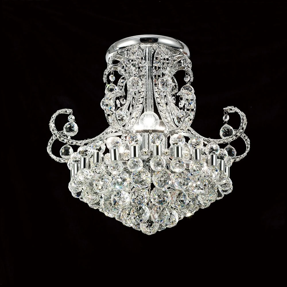 The Pearl is a 9 light round ceiling light by Diyas with a Polished Chrome finish and crystal glass shades. It requires 9 x 60W max E14 light bulbs which can be candle.