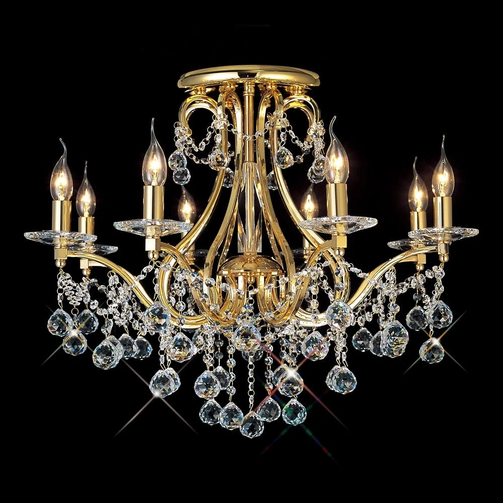 The Bianco is a 8 light ceiling lamp by Diyas with French Gold finish and crystal shades.It requires 8 x 60W max E14 light bulbs which can be candle.