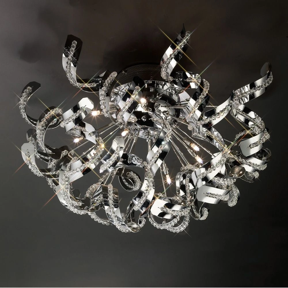 An fascinating suite of Polished Chrome pivot illuminate with the highest Quality Asfour Crystal Beads. The sequence of the white halogen lamps and bright crystal reflecting on the affluence of Chrome area is truly astonishing. From the elegant 1.2m diameter pendant to the smaller 3 light wall lamp, this range can meet any condition. The Table and Floor lamp are equipped with an In-line dimmer switch while the ceiling fittings are not convenient for dimming.
