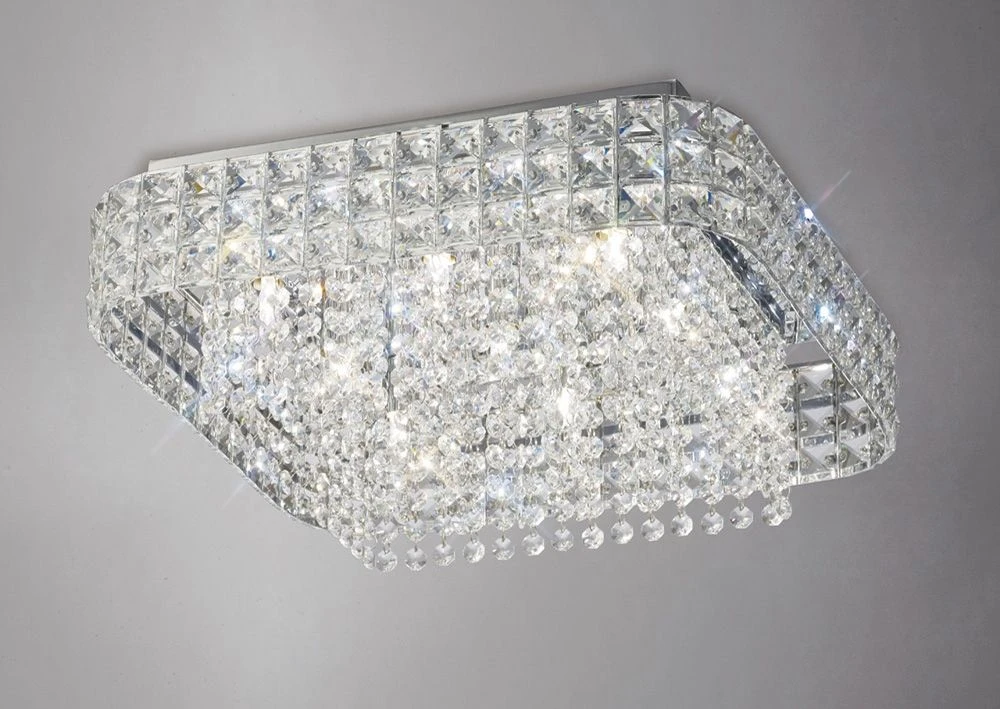 These lights are incredibly remarkable as they are loaded with Asfour crystal squares all round the top of the lights and filled with filament of hanging octagon crystal. Elegant framework has been negotiate to almost unseen. By using smaller crystals throughout the range, and therefore more of them, the end result is truly amazing constructing a mass of colour and glamour.