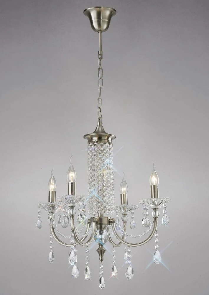 Leana is a historic range of a single wall lamp finished in satin nickel and chandeliers, produced around classic enthusiasms. The considerably sized pendalogue crystals displayed at the base of the structure constrcut an attractive centre piece. The fitting brings a current component in the form of stoned crystal strings paralleled from the centre column along the arms, united with crystal beads hanging from the sconces and arms.