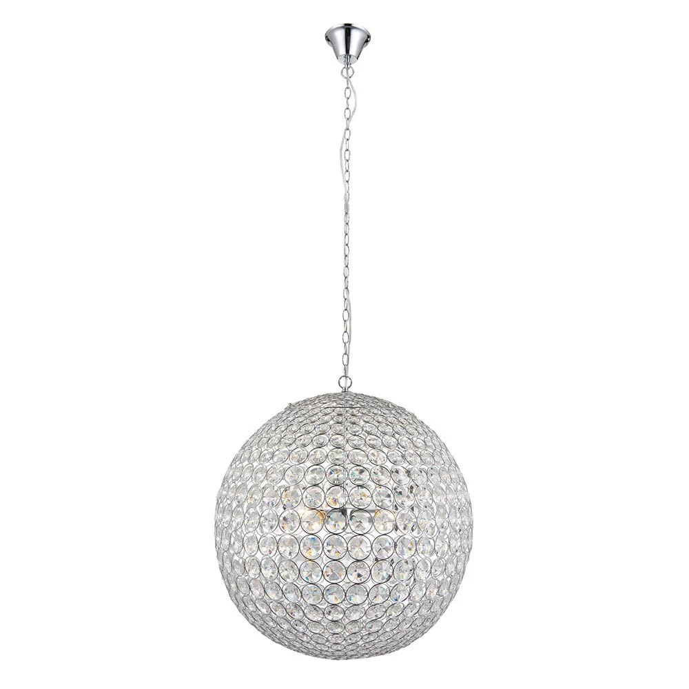 A large pendant light finished in a chrome effect plate with clear K9 crystal beads for a shimmering light effect. Height is adjustable, dimmable and suitable for use with LED lamps