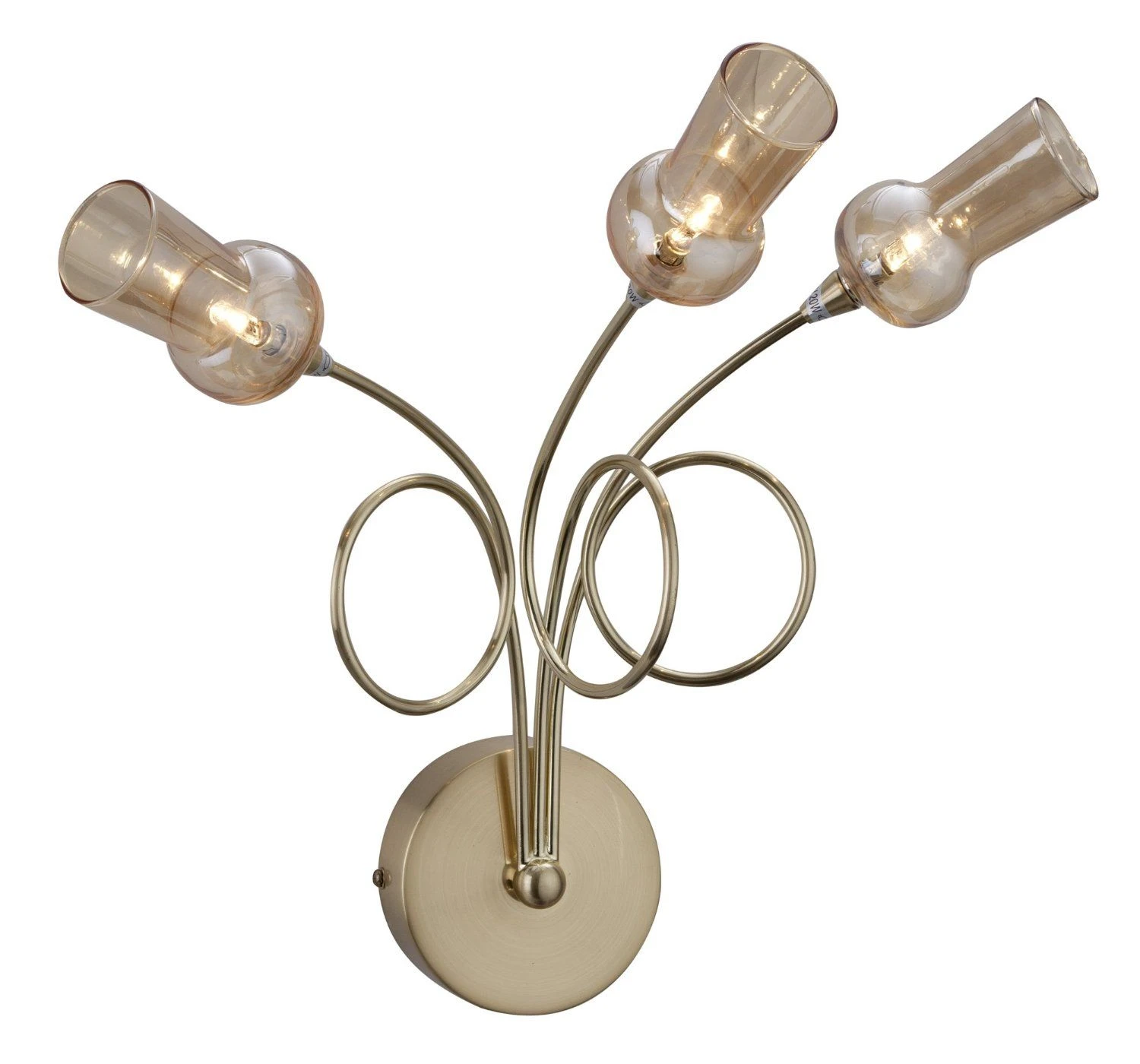 Brushed brass metal finish with amber tint glass shades. Also available in chrome with smoke tint glass.