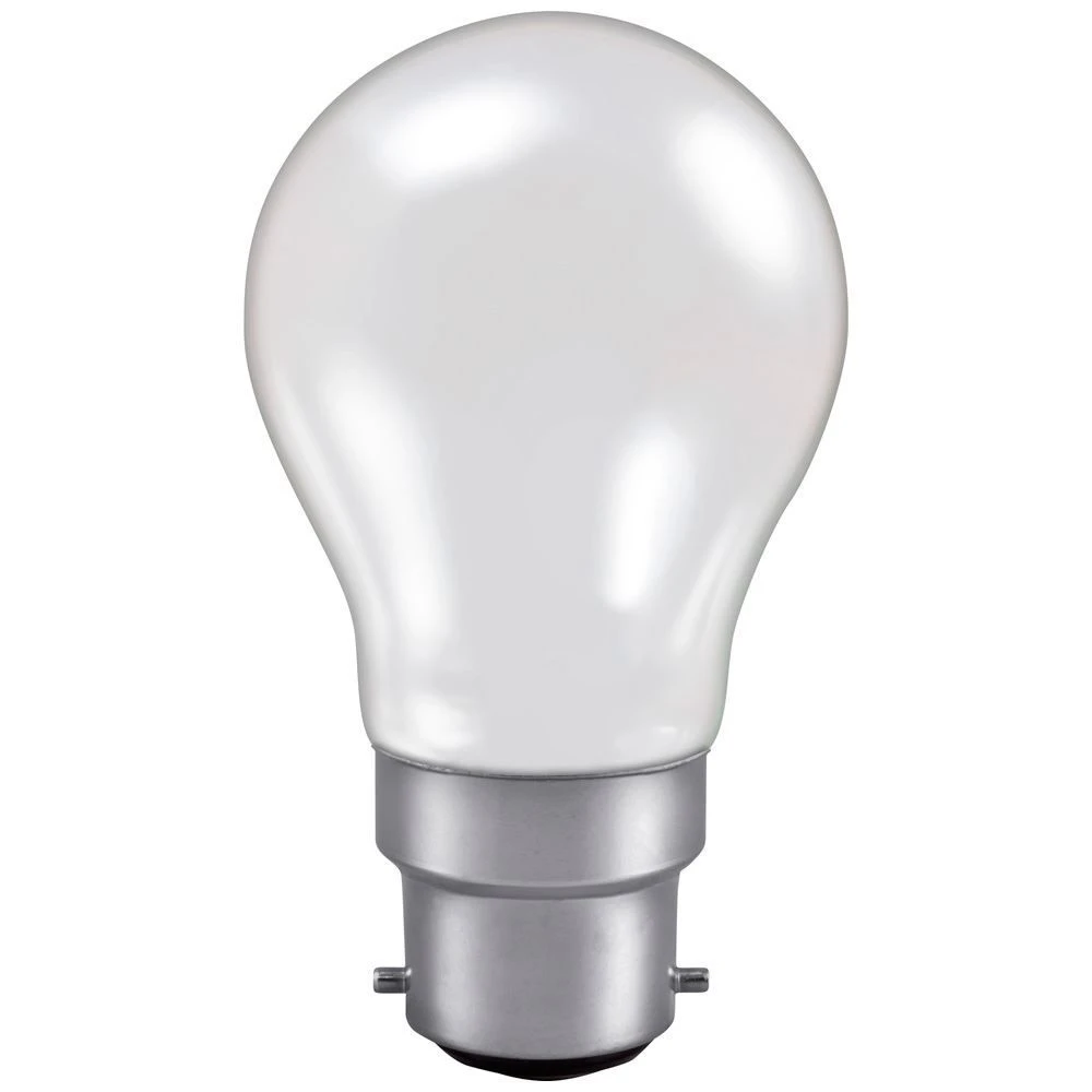 Incandescent A55 GLS shaped light bulb with large screw thread ES/E27. This light bulb is rated at 40 watts and 230 volts with an opal finish to the glass. It produces a bright warm white 2,700k light at 415 lumens and can be dimmed 100% with a conventional dimmer switch. Average life span of 1,000 hours.