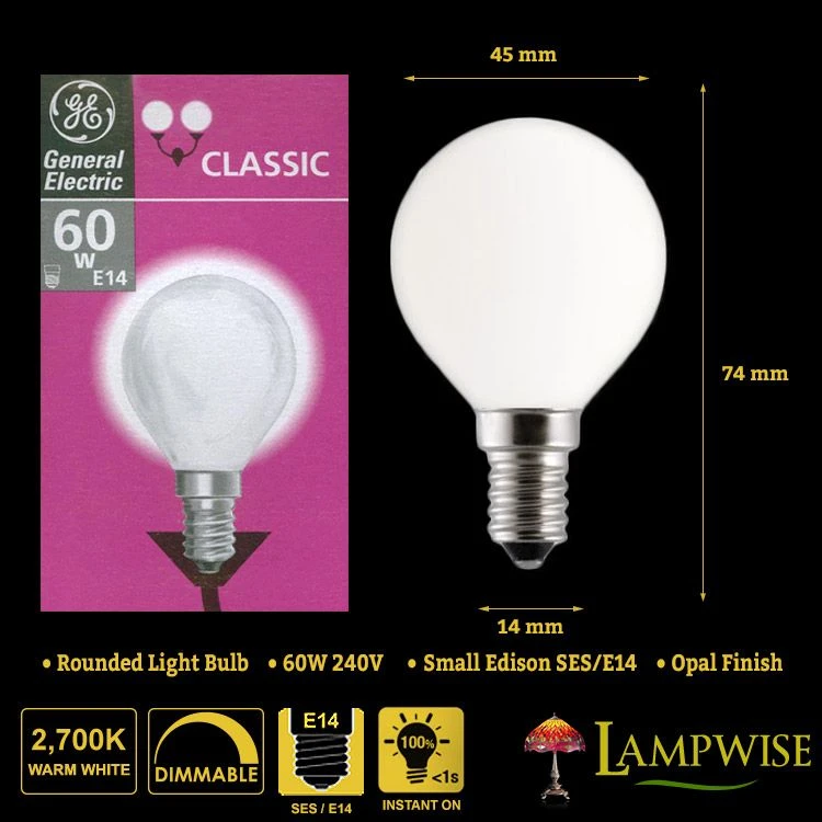 Be the first to review “GE 60W 240V SES E14 Golf Ball Round Opal Light Bulb” Cancel reply