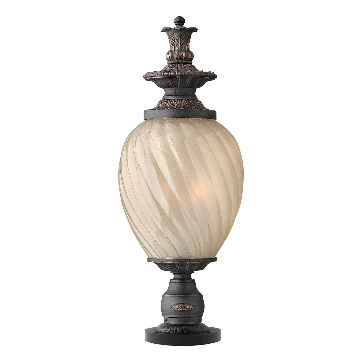 Montreal’s traditional old world styling features ornate cast aluminium construction in an Aged Iron finish with stunning inside etched amber optic glass.