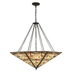 Interiors 1900 T056MEGA-SUMEGA Tiffany Dragonfly Beige Mega Panel Inverted 8Lt Pendant