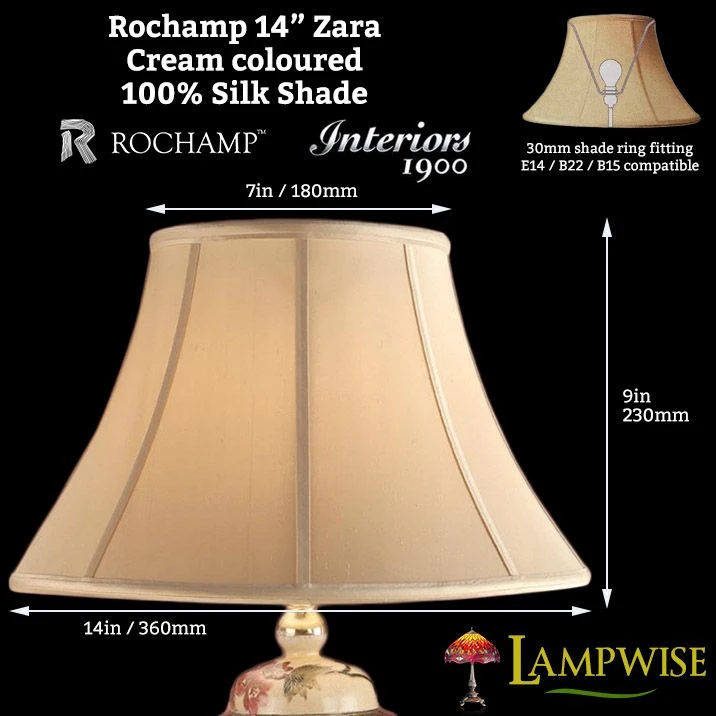 14 inch bowed empire cream shade in finest silk. Also available in other sizes.