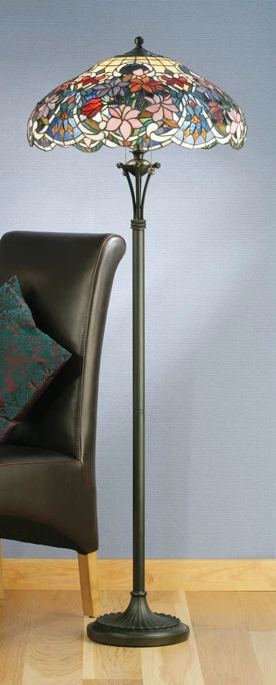 The Sullivan floor lamp is a richly coloured floral Tiffany design, teamed with a dark bronze effect fitting. Matching items available and compatible with LED lamps