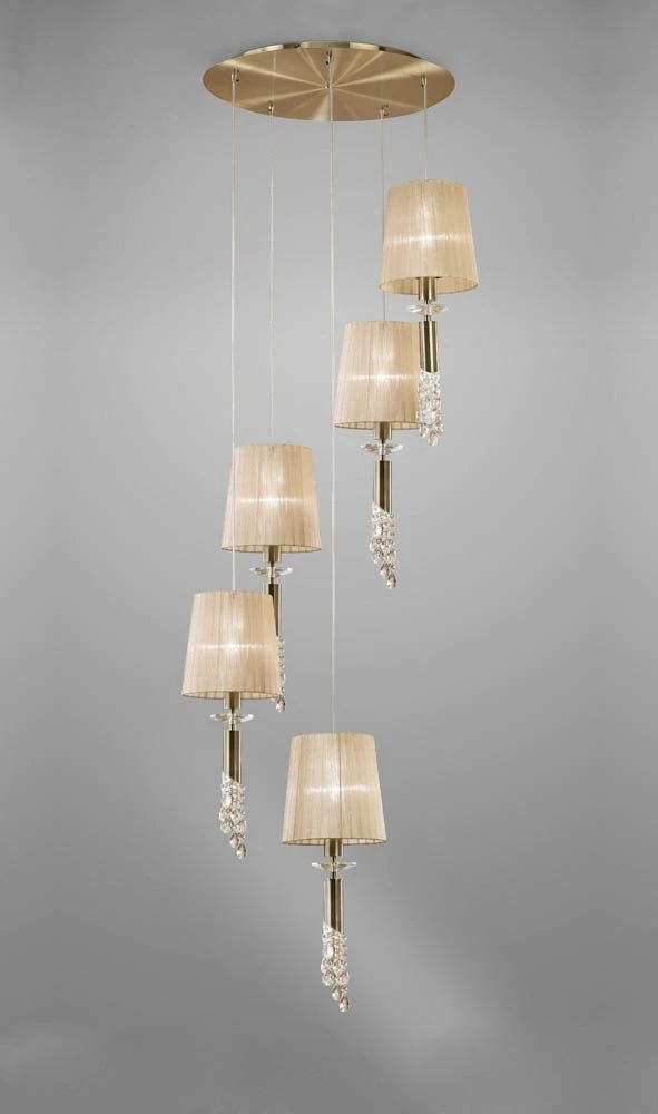 Be the first to review “Mantra M3877 Tiffany Pendant 5+5 Light E27 Spiral, Antique Brass With Soft Bronze Shades & Clear Crystal” Cancel reply