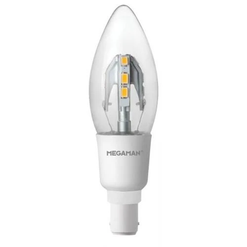 88% energy saving LED clear candle light bulb from Megaman outputs a soft warm white 2800K colour temperature. Please note this light bulb is not suitable for dimming.