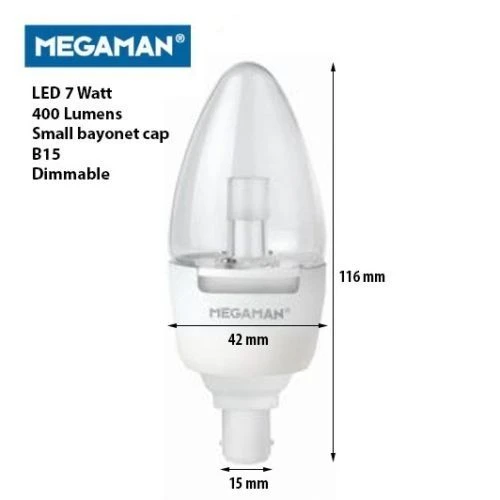 Be the first to review “Megaman 143277 7W 240V SBC/B15 Warm White LED Dimmable Clear Candle Lamp” Cancel reply