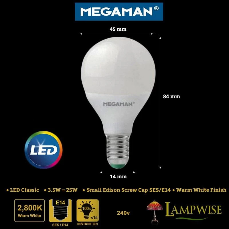 LED Golf Ball shape bulb with a Small Edison Screw Cap fitting with a 15,000 hour lifespan.