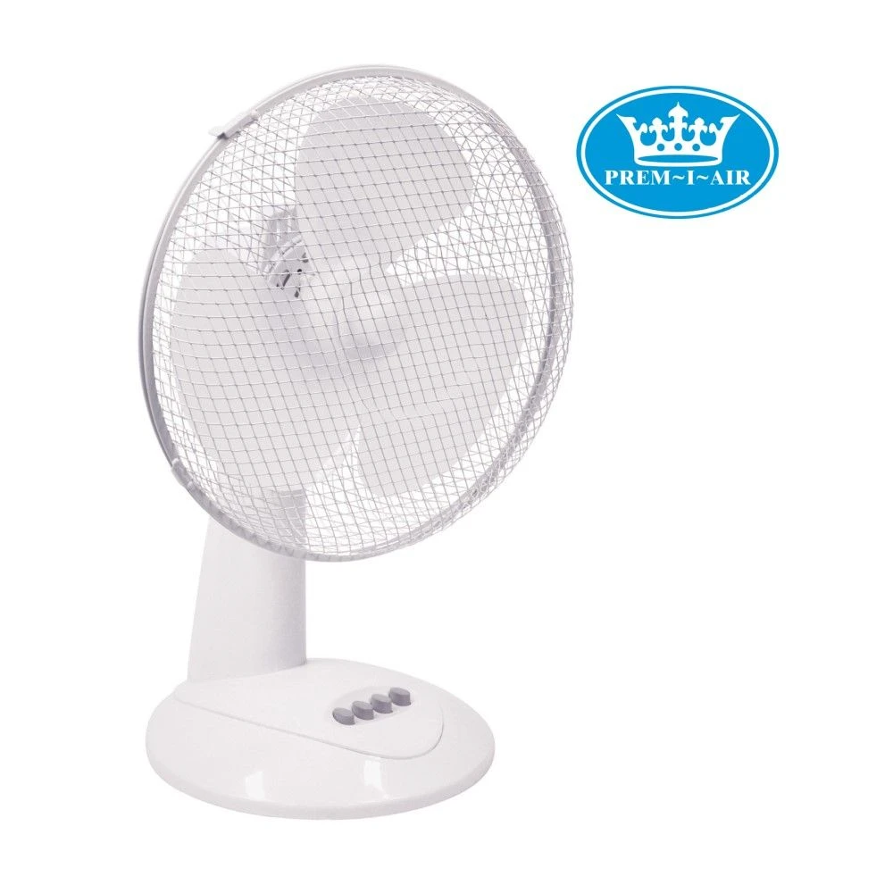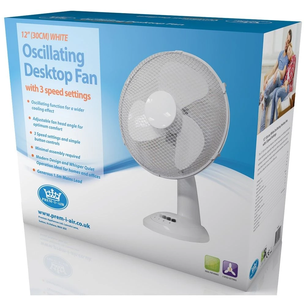 The 12″” (30 cm) Desk Fan features 3 speed settings, an oscillating function for wider distribution and fan head angle to ensure that this tabletop or desktop fan really hits the spot. With a simple button control panel that is easy-to-use, modern design and quiet operation, this attractive Desk Fan is ideal for home or small office use. Supplied in a robust 5 ply carton.