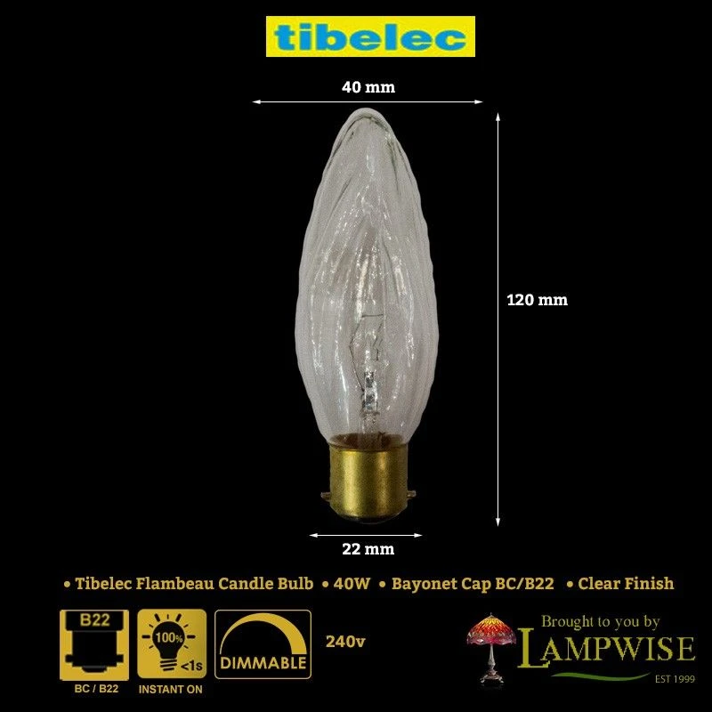 This Tibelec Flambeau candle bulb has a great style with the Clear finish to it & a Bayonet cap BC/B22